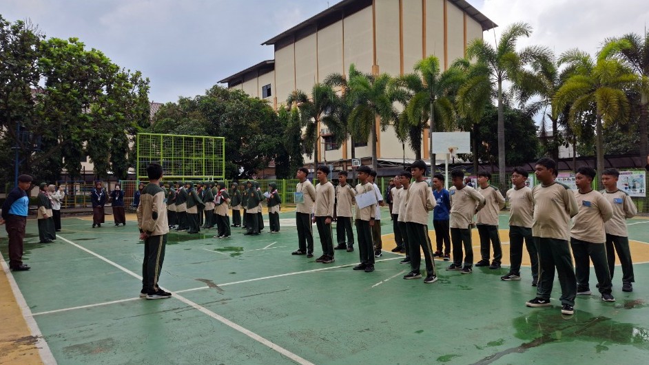 Tidak hanya teori, peserta juga menjalani sesi praktik melalui Peraturan Baris Berbaris (PBB) di lapangan utama sekolah. Panitia pun menerapkan budaya disiplin dengan mengadakan “operasi semut” – memastikan lingkungan tetap bersih sebelum waktu istirahat, sholat, dan makan siang tiba.