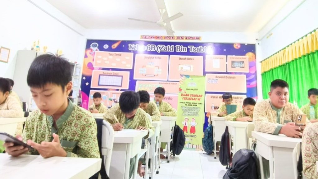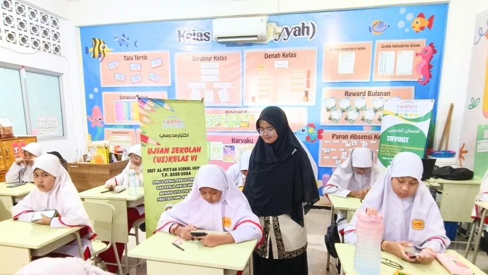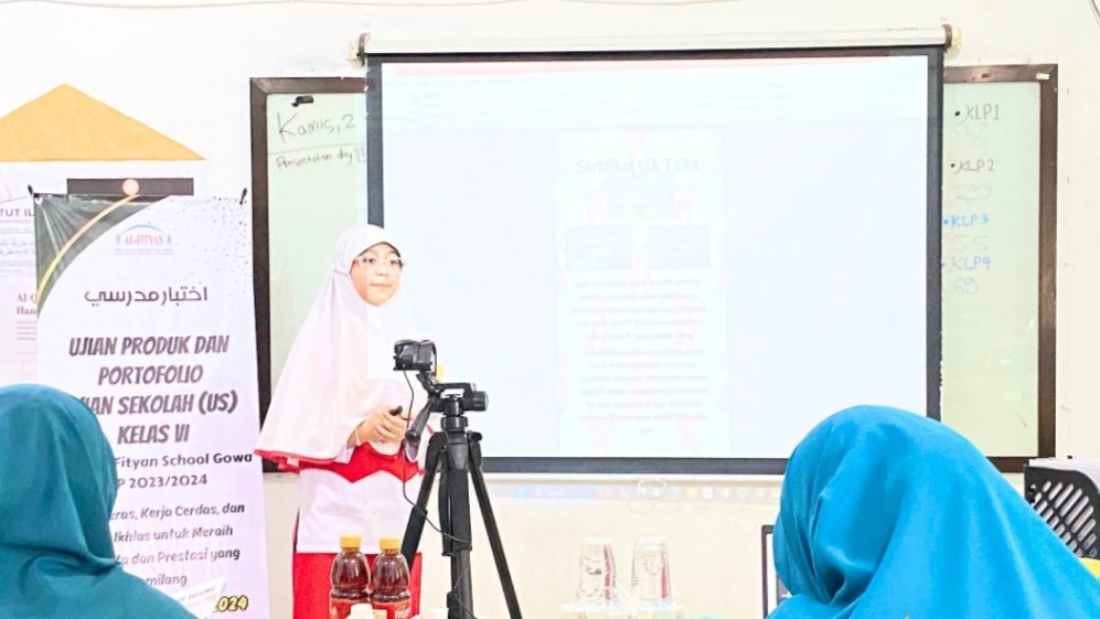 Sekolah Islam – SDIT Al-Fityan School Gowa- Ujian Sekolah Kelas VI dimulai dengan pembuatan ujian produk pada tanggal 18-22 Maret 2024, yaitu peserta didik membuat video singkat mengenai adab siswa di sekolah. Pada tanggal 25-28 Maret dilanjutkan dengan pembuatan bahan ujian portofolio yang diujiankan dan disaksikan langsung oleh orang tua peserta didik melalui google meet pada tanggal 2 Mei 2024. Sekolah Unggulan SDIT Al-Fityan School Gowa– Ujian Sekolah kelas VI ini dilaksanakan selama enam hari, yaitu pada hari Senin-Jumat, 13 Mei – 17 2024, hingga Senin, 20 Mei 2024. Kegiatan ini diikuti oleh 104 peserta didik. Ujian Sekolah kelas VI dilaksanakan di gedung B dan gedung akhwat SDIT Al-Fityan School Gowa.
