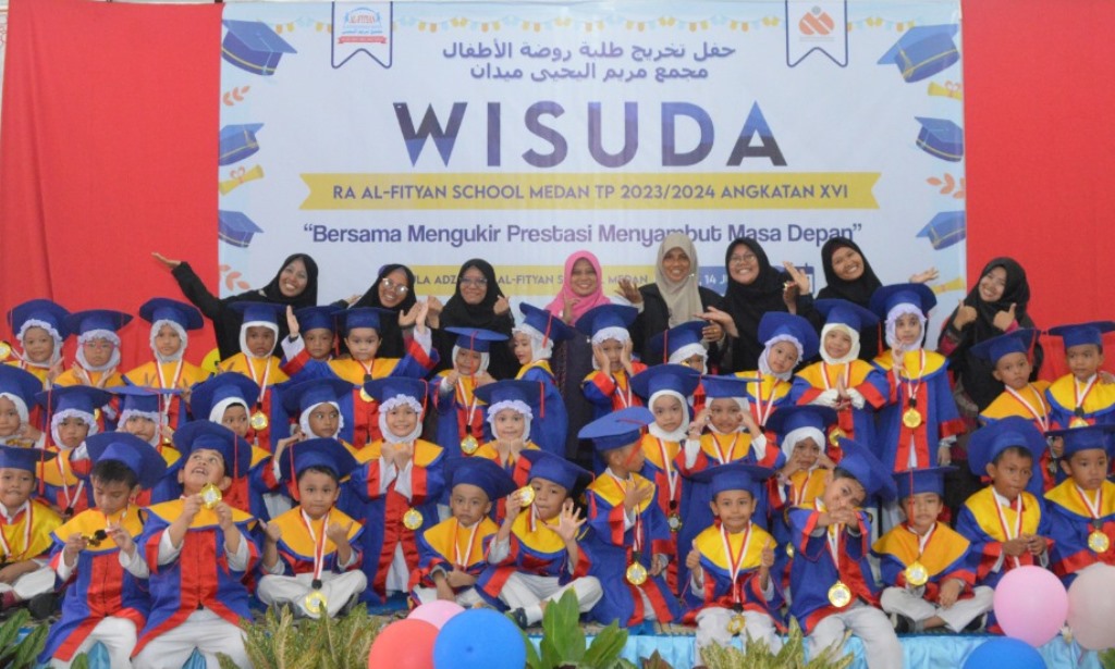 Medan, Jum’at, 14 Juni 2024 – RA Al Fityan Medan menggelar acara Wisuda yang diadakan di Aula Adz Dzikra Al Fityan Medan. Wisuda ini merupakan kegiatan akhir tahun sebagai pelepasan siswa TK B. Dengan tema “Bersama Mengukir Prestasi Menyambut Masa Depan”, acara berlangsung dari pukul 08.00 WIB hingga 10.45 WIB, dihadiri oleh 116 orang yang terdiri dari orang tua dan wali murid TK B RA Al Fityan Medan.