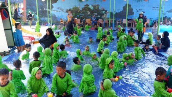 Kegiatan main yang disiapkan bertujuan untuk melatih keberanian anak, untuk melatih keseimbangan motorik kasar ananda, untuk melatih kemandirian anak. Setelah selesai bermain di kolam renang dan berganti baju, peserta didik diarahkan untuk istirahat dan makan siang bersama sebelum kembali ke sekolah.