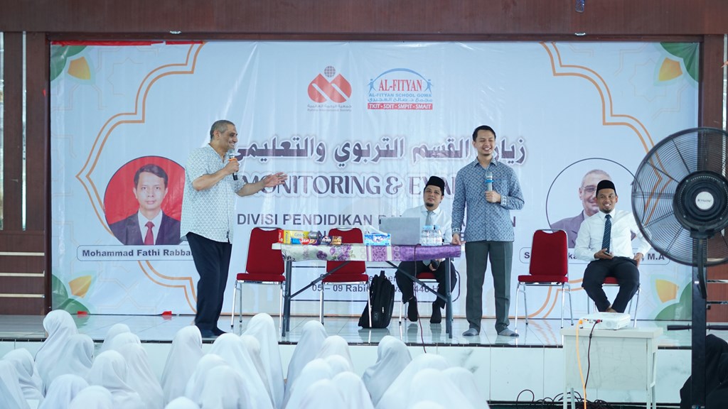 Gowa – Al-Fityan School Gowa baru-baru ini menerima kunjungan supervisi dari Syeikh Zakariya Sirajuddin, yang didampingi oleh Ustadz Fathi Rabbani, pada tanggal 9 hingga 13 September 2024. Kunjungan ini bertujuan untuk melakukan monitoring dan evaluasi terhadap kinerja administrasi serta mutu pendidikan di sekolah. Selain itu, Syeikh Zakariya juga menyampaikan sejumlah seminar yang bermanfaat bagi siswa, guru, dan santri tahfiz.