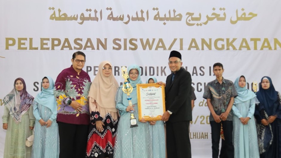Kepala Sekolah Ustaz Ahmad Akbar Lubis, M.Pd. mengumumkan siswa terbaik dalam 5 bidang: