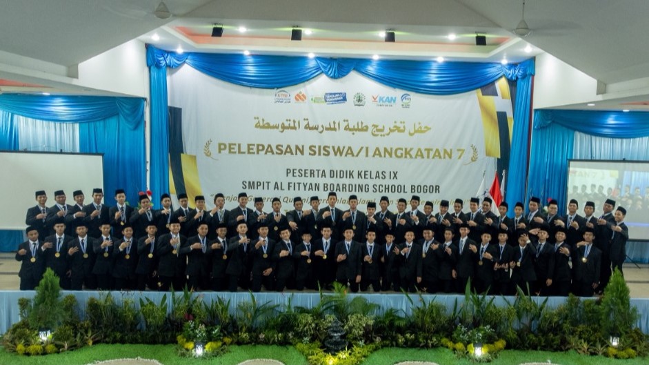 Bogor, 1 Juni 2025 – Gedung Aula Al Wafa Al-Fityan Boarding School Bogor menjadi saksi Haflah Takharuj Angkatan VII yang digelar selama dua hari (31 Mei-1 Juni 2025). Acara perpisahan kelas IX ini dihadiri oleh seluruh civitas sekolah, orang tua, serta tamu kehormatan, termasuk KH. Taufik Haris Lubis, Lc., M.A. (Mudir), H. Achmad Fathoni, S.T., M.P.W.K (Anggota DPRD Kab. Bogor), dan Syaikh Zakaria Sirojuddin, M.A (Kepala Divisi Pendidikan).