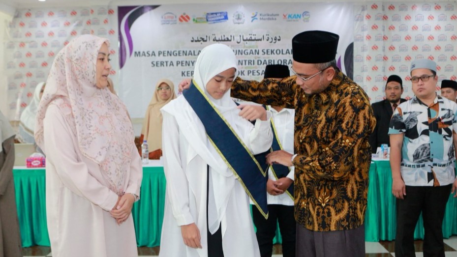 Bogor – Kegiatan serah terima santri baru Pondok Pesantren Al-Fityan Boarding School Bogor (ABSB) berlangsung hikmat pada Ahad, 14 Juli 2024. KH. Taufik Haris Lubis, Lc., selaku Mudir, menerima secara simbolis empat putra-putri dari total 82 santri/wati SMP dan 15 santri/wati SMA dari seorang perwakilan wali santri. Prosesi peresmian sebagai santri baru ditandai dengan pemberian slempang oleh Mudir ABSB.