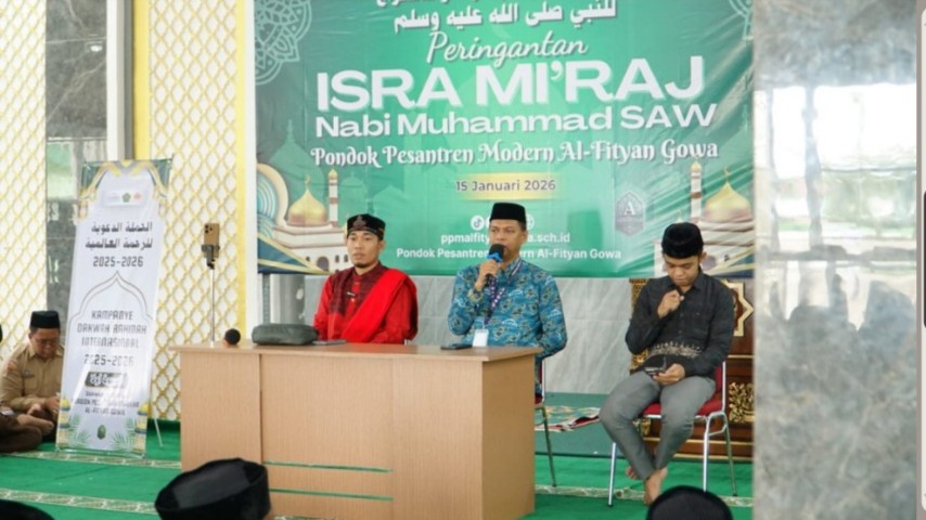 GOWA, 15 Januari 2026 – Suasana khidmat dan penuh hikmah menyelimuti Masjid Pondok Pesantren Modern (PPM) Al-Fityan Gowa dalam Peringatan Isra’ Mi’raj Nabi Muhammad SAW 1447 Hijriah, Kamis (15/1/2026). Kegiatan yang diikuti seluruh civitas akademika pesantren ini menjadi momentum berharga untuk menggali keteladanan, memperdalam iman, dan merefleksikan makna perjalanan spiritual Rasulullah SAW.