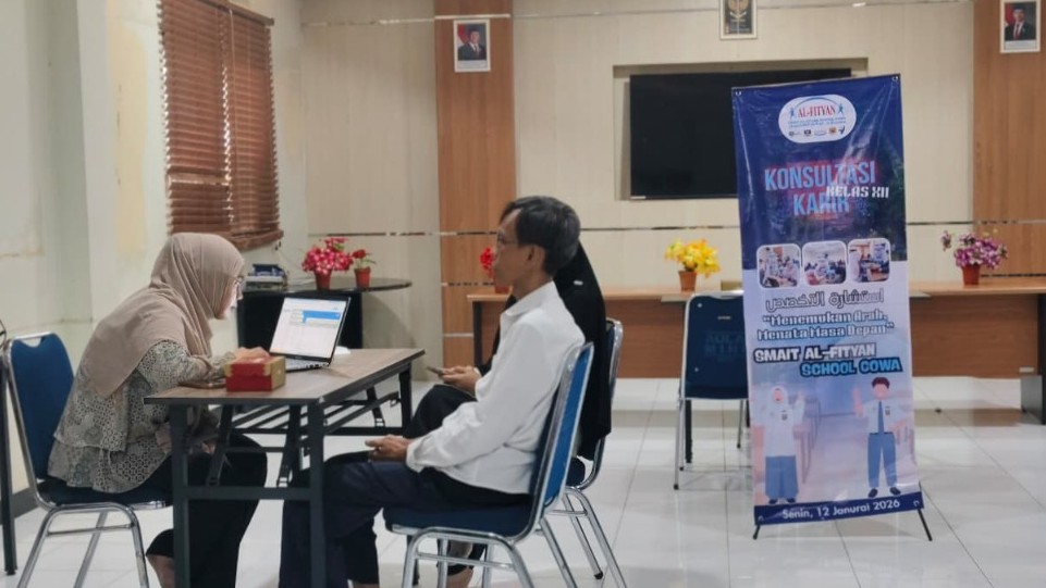 Gowa, 13 Januari 2026 – SMA Islam Terpadu (SMAIT) Al-Fityan School Gowa menggelar kegiatan penting bagi siswa kelas XII, yakni Konsultasi Jurusan, pada Senin, 12 Januari 2026. Acara yang dilaksanakan di Aula Mini SMAIT Al-Fityan School Gowa ini diikuti oleh 51 siswa eligibel, yang turut didampingi langsung oleh orang tua masing-masing.