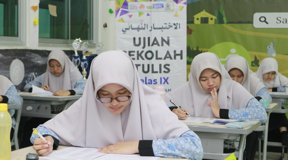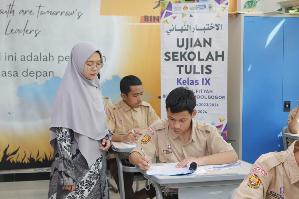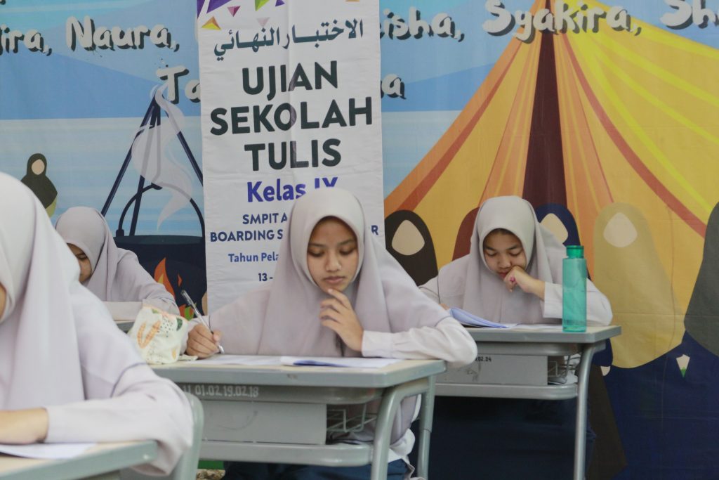 Bogor- SMPIT Al Fityan Boarding School Bogor telah melaksanakan kegiatan Ujian Sekolah (Tulis) untuk seluruh siswa/i kelas IX pada Senin, 13 Mei 2024 hingga Jumat, 17 Mei 2024. Kegiatan ujian ini berlangsung selama 5 hari berturut-turut, diikuti oleh seluruh siswa kelas IX dari pukul 07:30 hingga 14:20. Ujian dilaksanakan di ruang kelas masing-masing.