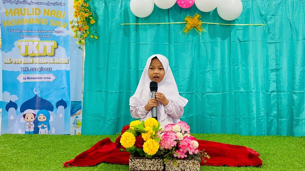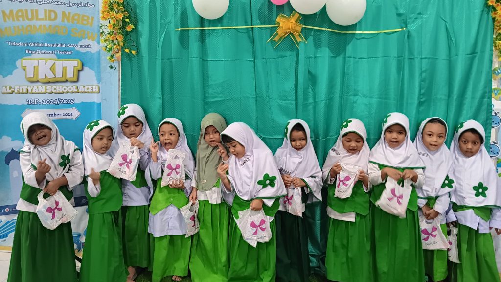 Banda Aceh – Suasana penuh keceriaan dan semangat keislaman menyelimuti TKIT Al-Fityan Aceh pada peringatan Maulid Nabi Muhammad SAW yang berlangsung meriah selama tiga hari, 21-25 November 2024. Kegiatan yang diikuti seluruh siswa TKIT Al-Fityan ini tidak hanya menjadi ajang perayaan, namun juga menjadi sarana efektif untuk menanamkan nilai-nilai keislaman dan kecintaan kepada Rasulullah sejak dini.