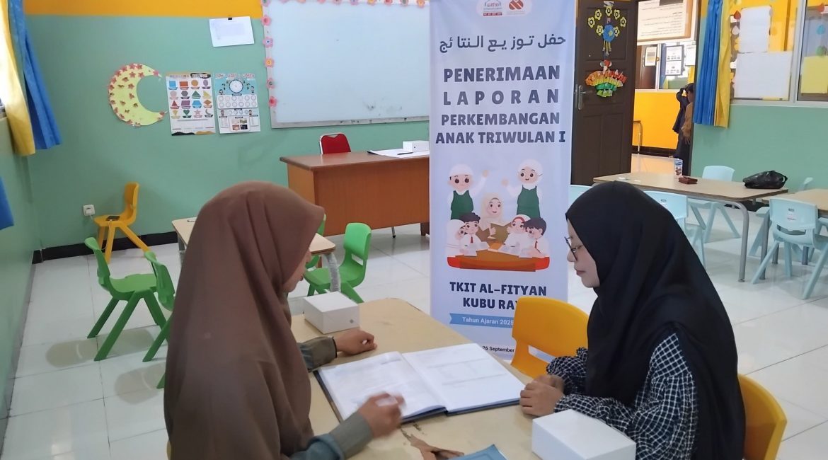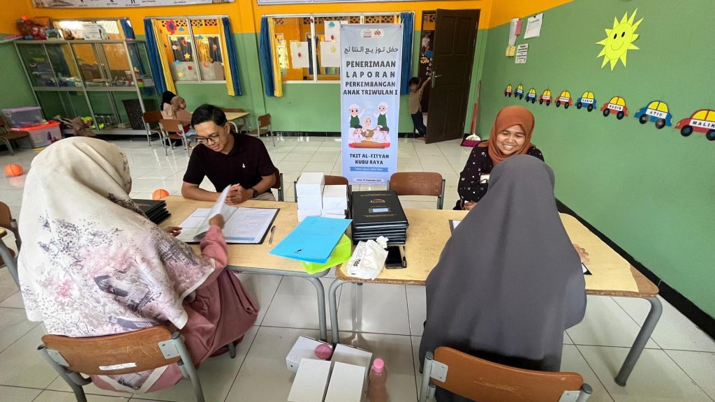 Kubu Raya, 26 September 2025 – Sebagai bagian dari komitmen untuk menjaga kemitraan yang baik dengan keluarga, TKIT Al-Fityan Kubu Raya telah menyelenggarakan kegiatan Penerimaan Laporan Perkembangan Anak (LPA) Triwulan I pada Jumat, 26 September 2025. Kegiatan yang diikuti oleh orang tua/wali murid ini bertujuan untuk mengevaluasi hasil belajar serta menyampaikan perkembangan dan pencapaian anak selama periode pertama di sekolah.