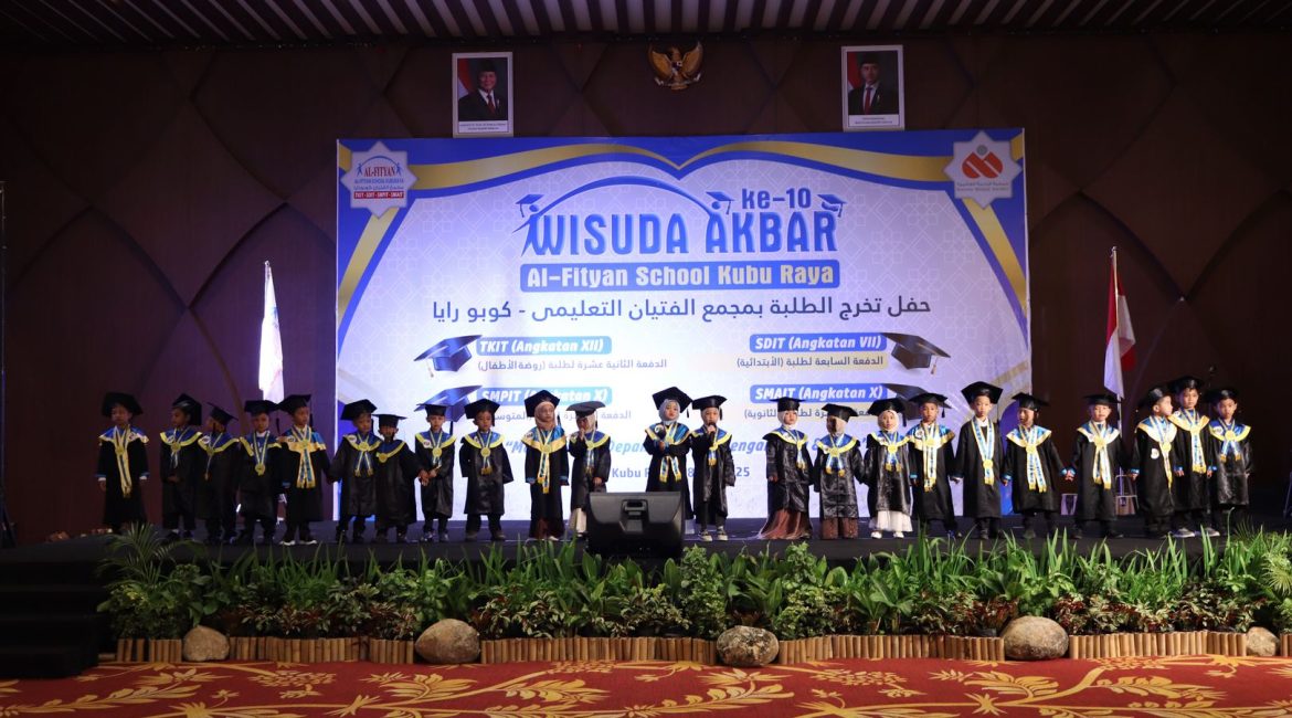 Kubu Raya, 28 Mei 2025 – Al-Fityan School Kubu Raya (Afisku) kembali menorehkan sejarah dengan menyelenggarakan Wisuda Akbar ke-10 di Aula Qubu Resort, Rabu (28/5/2025). Sebanyak 234 lulusan dari jenjang TKIT, SDIT, SMPIT, hingga SMAIT diwisuda dalam acara khidmat yang berlangsung pukul 07.00–12.00 WIB, meneguhkan komitmen sekolah dalam mencetak generasi unggul yang berprestasi dan berakhlak Qur’ani.